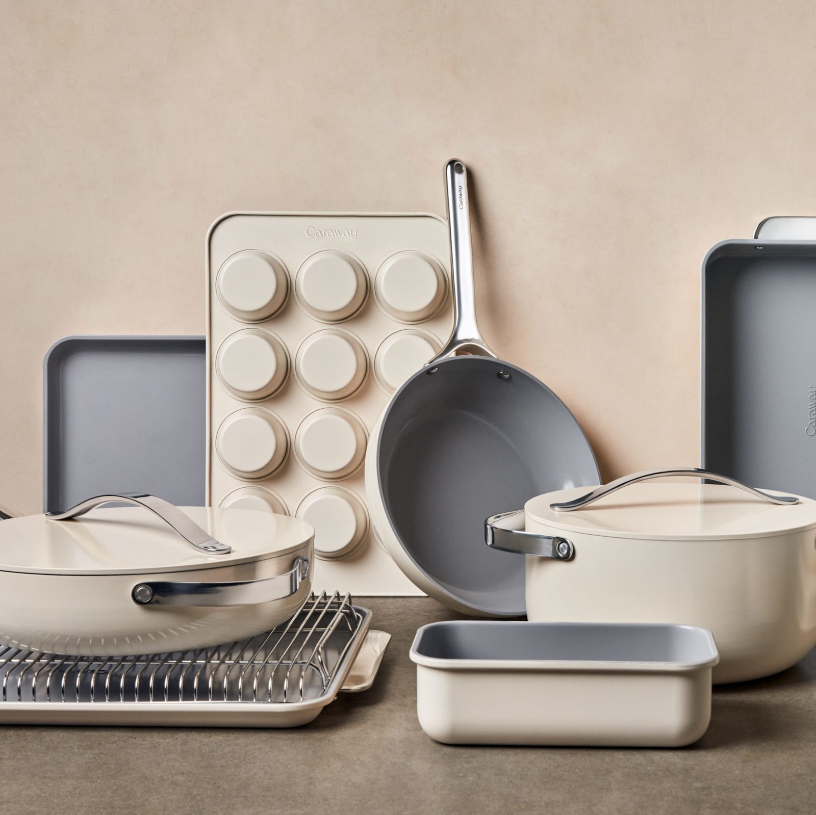 We decided to go all-in and order the cookware AND bakeware sets in Caraway’s stunning cream color, and the savings were…crazy. We know from experience that their Cookware sets sell out, so we recommend purchasing a cookware set ASAP if you plan to see it this year.