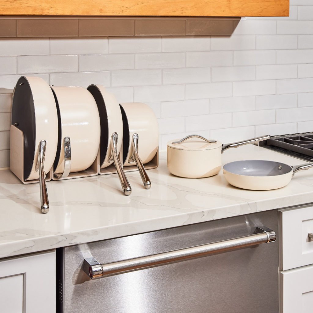 - Storage solution that deserves a Nobel Prize: We can’t say enough about how ingenious this addition is. With Caraway’s bundles you can double your kitchen tools and cut down on the space needed to put them away.