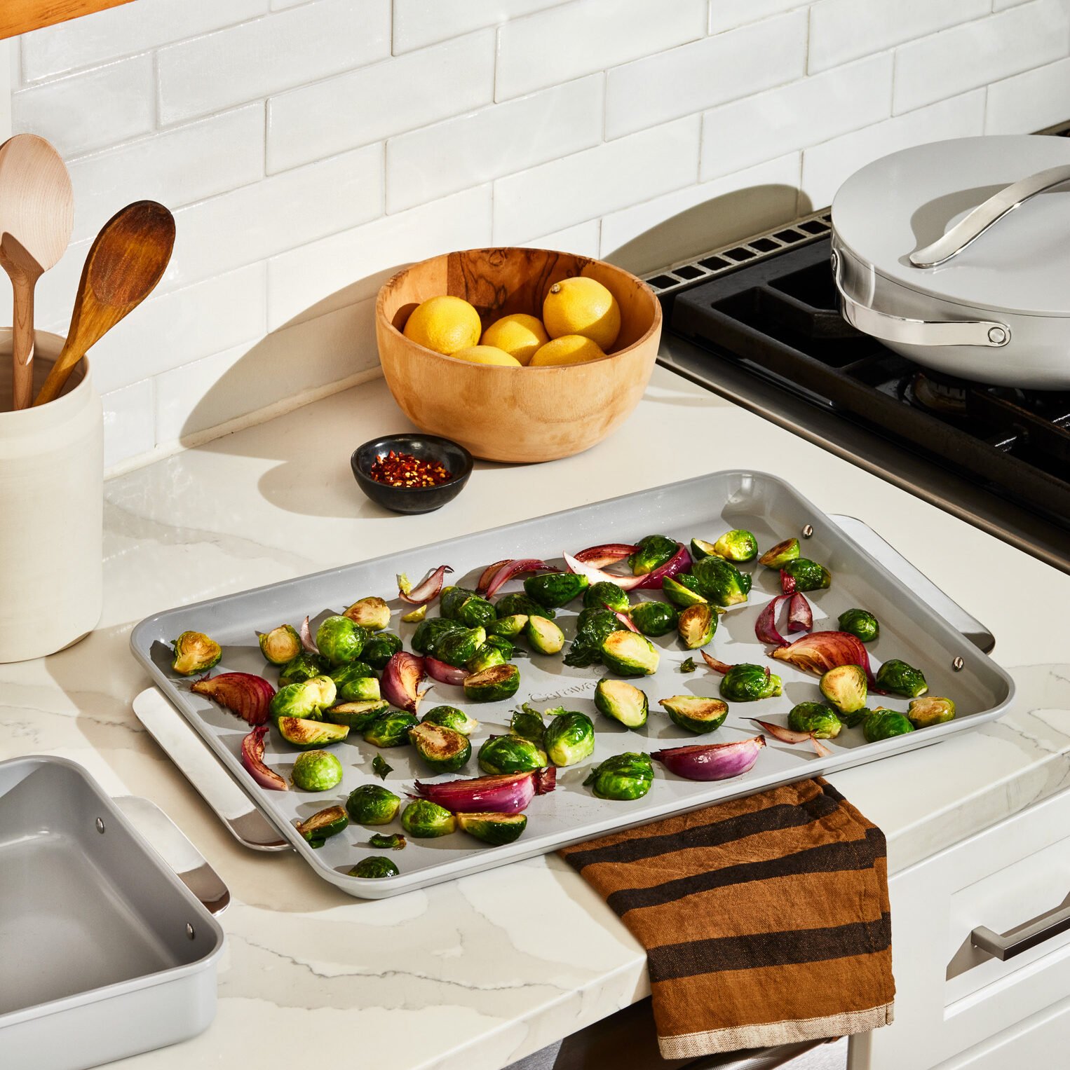 Caraway’s ever-so-Instagrammable cookware set has accumulated a cult-like following of at-home chefs and celebrities alike. The non-toxic and non-stick cookware is so highly coveted that it sold out a whopping 15 times in 2021—and the bakeware sold out almost instantly after launching.