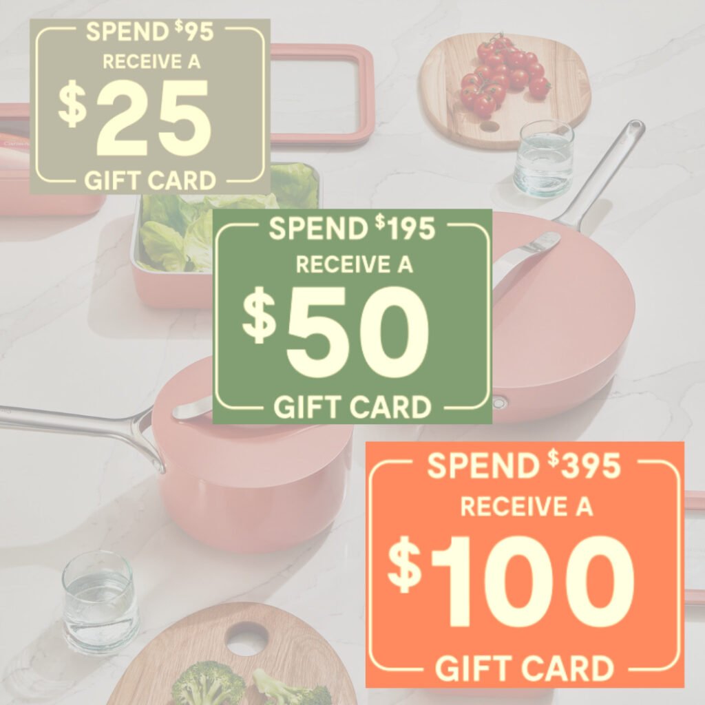 Because Spring (and free gift cards) are coming early this year. During Caraway’s Spring Forward Event, you can receive a gift card up to $100—and the more you spend, the bigger the gift card. This is the perfect opportunity to revamp your whole kitchen with gorgeous, non-toxic essentials, and get some cash back doing it.