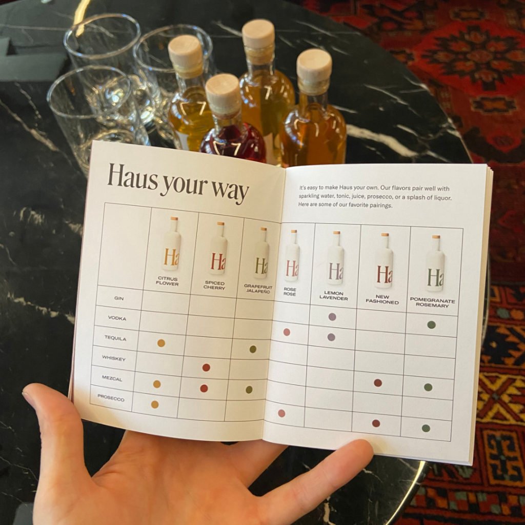 Haus thoughtfully includes a liquor-pairing guide, if you want to DIY your own recipes.
