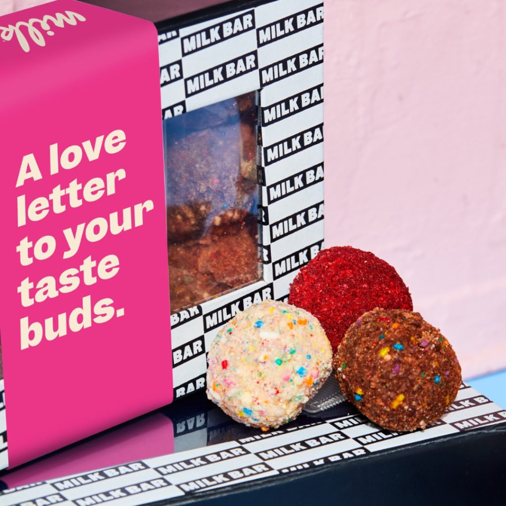 Plus for those wanting to have their main dessert squeeze while flirting with some sugary side pieces, Milk Bar bundled their Birthday Cake with a dozen Red Velvet Cheesecake Cake Truffles. You only live once—eat em both! Love doesn’t need to be confined when it comes to dessert.